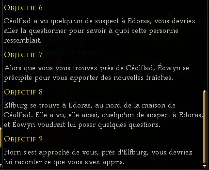 - Instance, parlez aux pnj (toutes les options jusqu'à ce que le pnj suivant arrive reparlez à Eowyn |