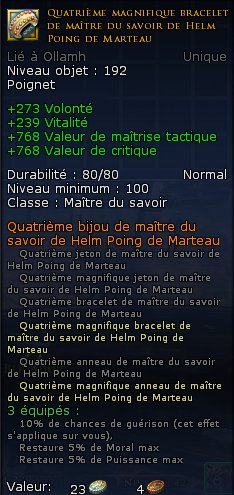 Statistiques  -   Équipement   -   Armes   -   Bijoux   -   Monture de Guerre